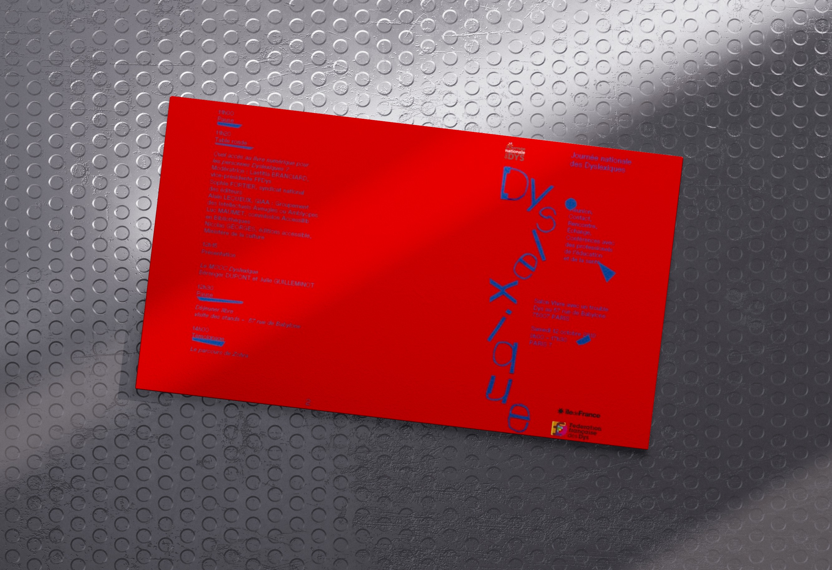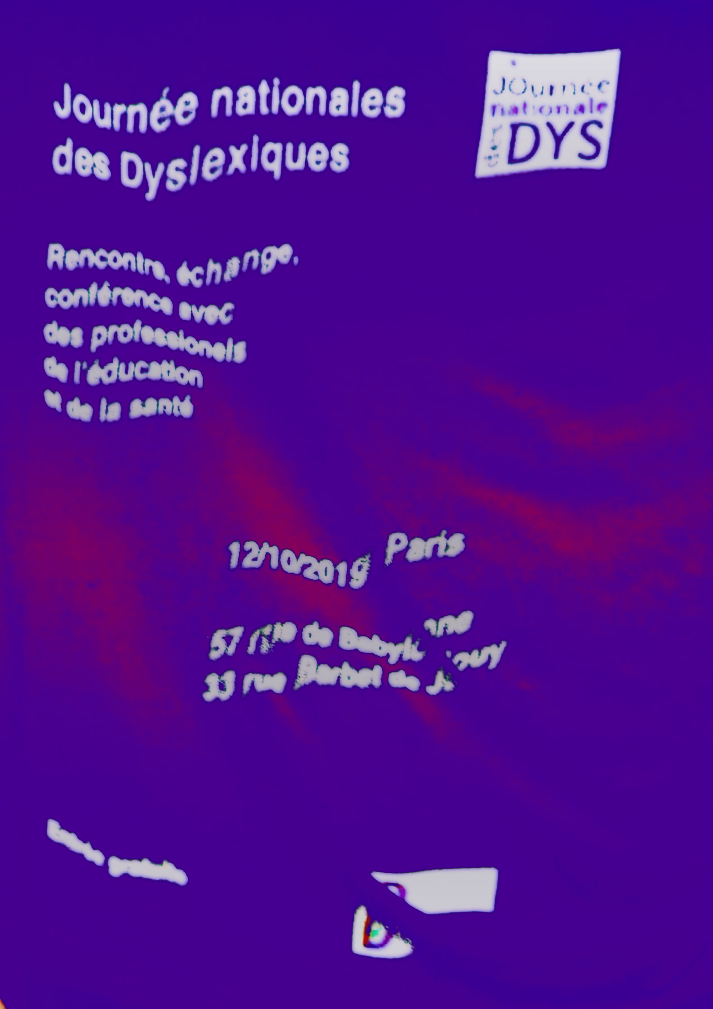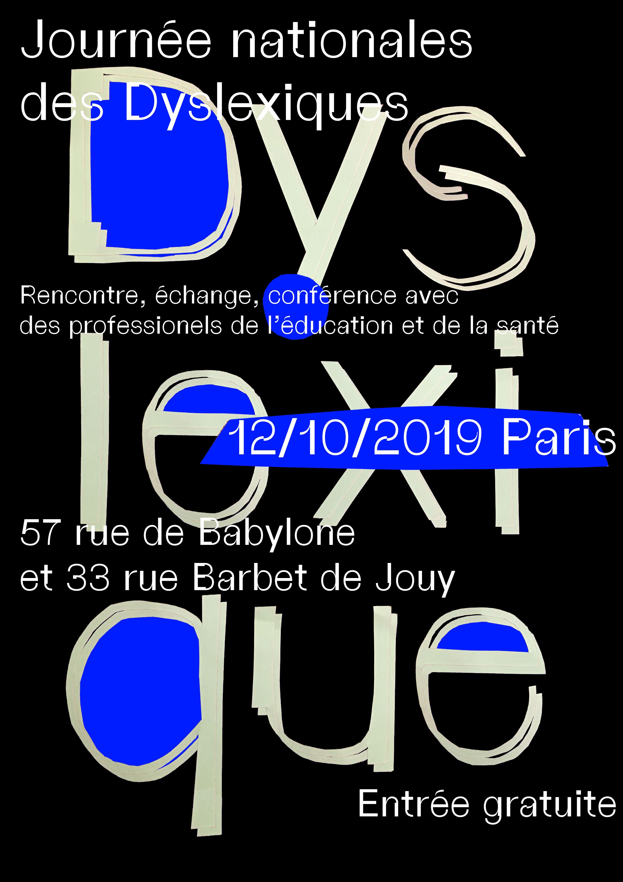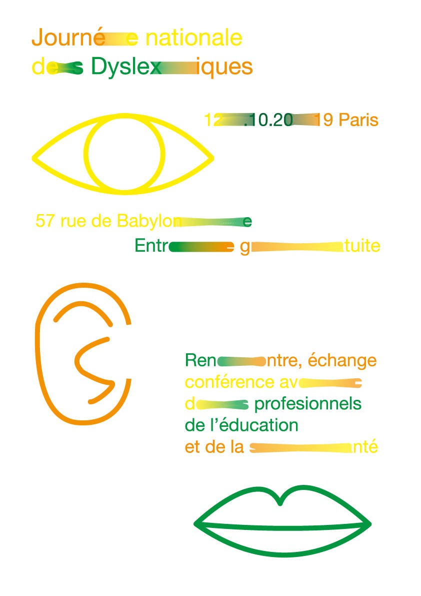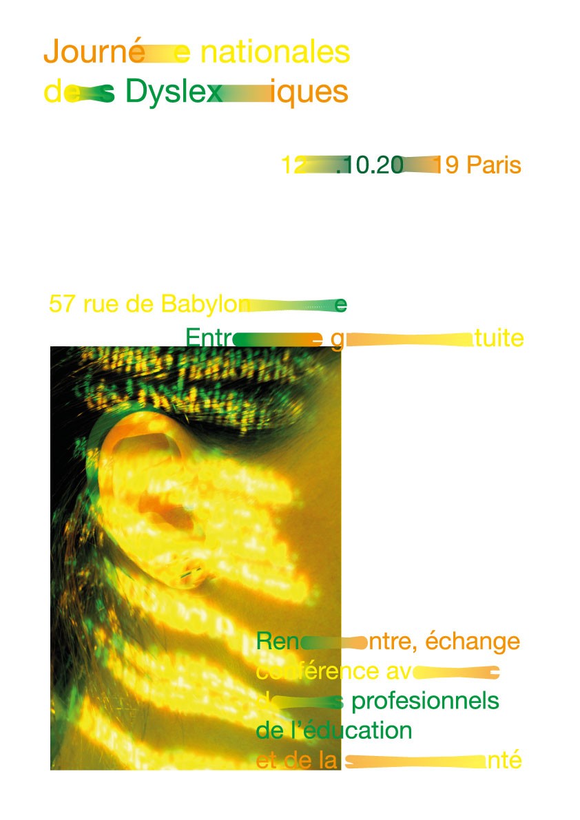La « Fédération française des DYS » a créé « la Journée nationale des DYS », qui a lieu tous les ans, pour appréhender les problémes que peuvent rencontrer les dyslexiques. Pour l’année 2019, la journée se concentre sur la dyslexie. L’objectif en tant que graphiste est de faire une campagne de sensibilisation sur l’évènement.