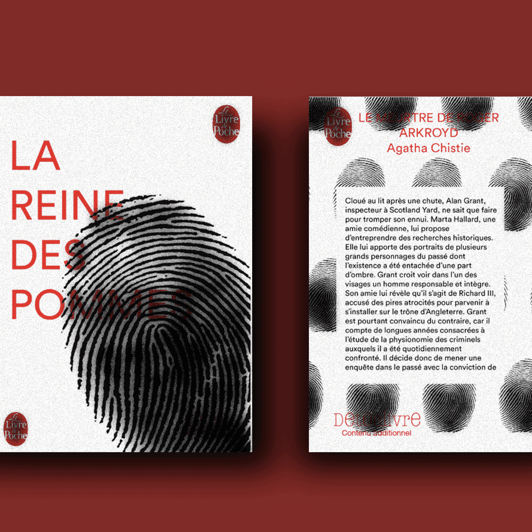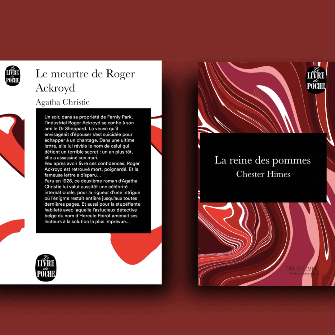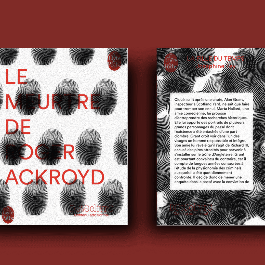 Réaliser des couvertures d’une collection de trois livres policiers : La fille du temps de Joséphine Tey, Le meurtre de Royers Ackroyd d’Agatha Christie, La reine des pommes de Chester Himes