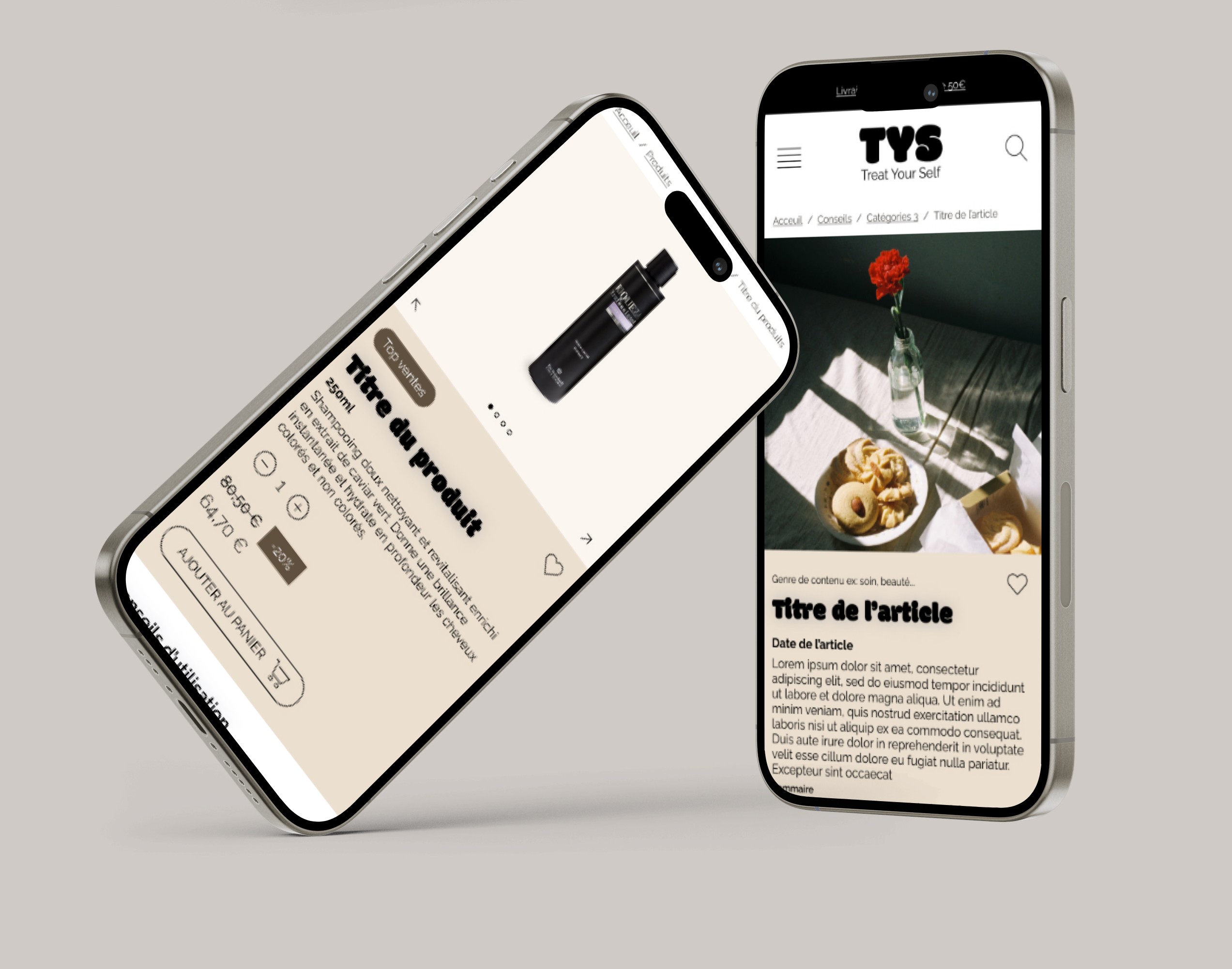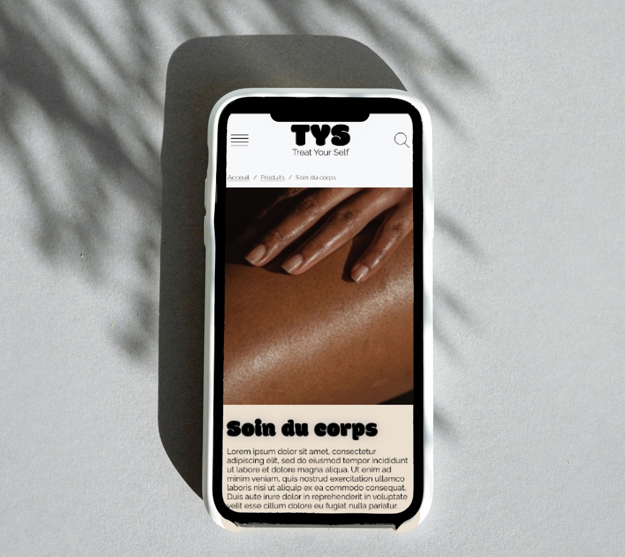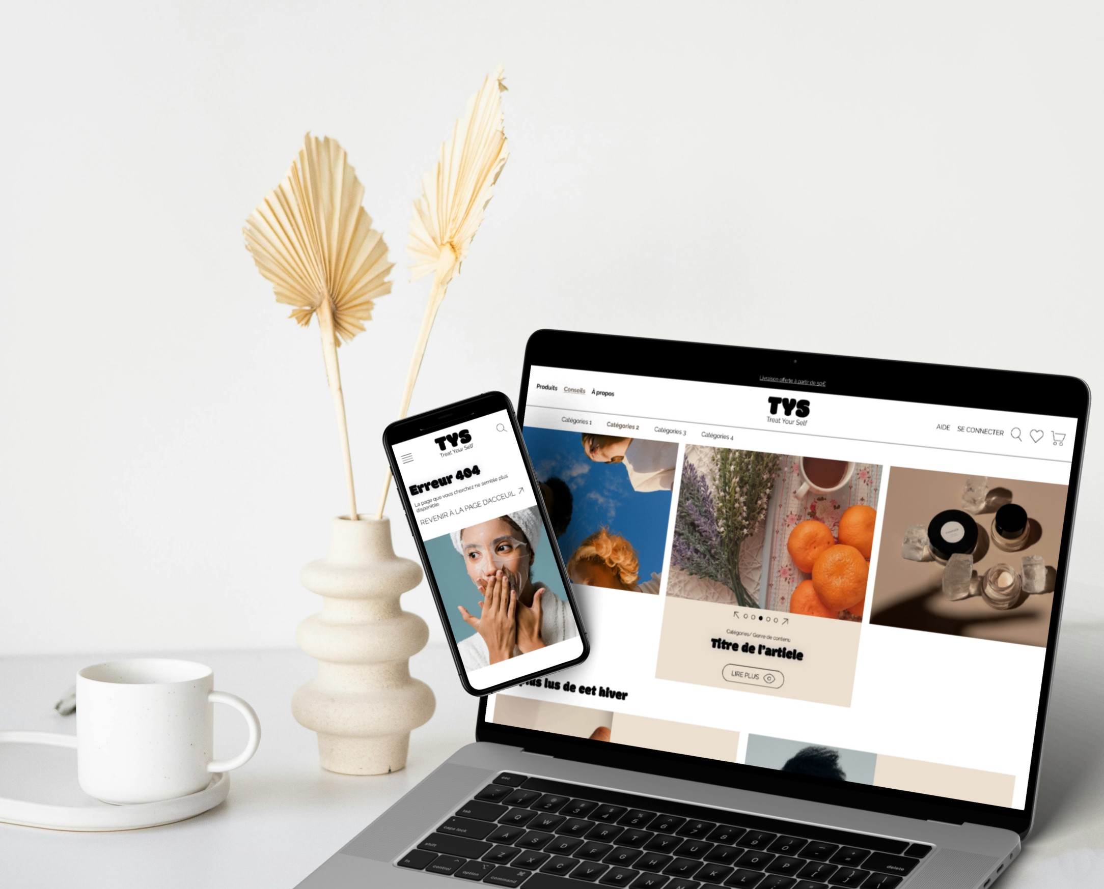 Création d'une charte graphique et de son site web pour TYS, une jeune marque de cosmétique qui prend soin de ses clients. Réflexion sur l'arborescence du site et mise en place d'un design system.